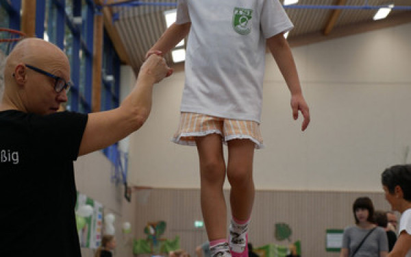 An jeder Ecke gab es etwas anderes zu entdecken: Es wurde am „Schlangenpfad“ balanciert, in luftige Höhen wagten sich die Kinder in die „Felsspalte“ und geklettert wurde im „Affenparcours“. Aber es gab auch die Möglichkeit einen „Tigersprung“ zu wagen oder Dschungeltiere mit Bällen zu füttern. Die aufwändig gestaltete Fotostation wurde eifrig genutzt, meist nachdem die Kinder beim Schminken in Schmetterlinge, Tiger oder andere Dschungel-Tiere verwandelt worden waren. Getanzt wurde auch: Der traditionelle „Sportinator“ war der Hit und alle machten mit. Das Bewirtungsangebot stand, dank vieler Kuchen- und Brezelspenden, dem Sportangebot in nichts nach und ließ keine Wünsche offen. Am Basteltisch wurde kreativ mit Papier und Schere gewerkelt und es wurden tolle Kunstwerke erstellt.