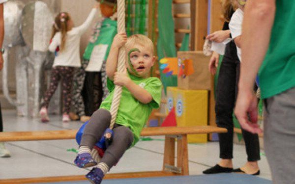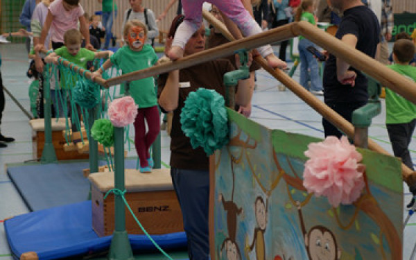 „Holt mich hier raus!“ dachte keiner, der am Samstag, den 19.10., zum „Abenteuer im Dschungel“ in die Doris-Leibinger-Halle kam. Ganz im Gegenteil – die abwechslungsreichen Turnstationen und die liebevoll und aufwändig dekorierte Turnhalle begeisterten wieder alle großen und kleinen Besucher.